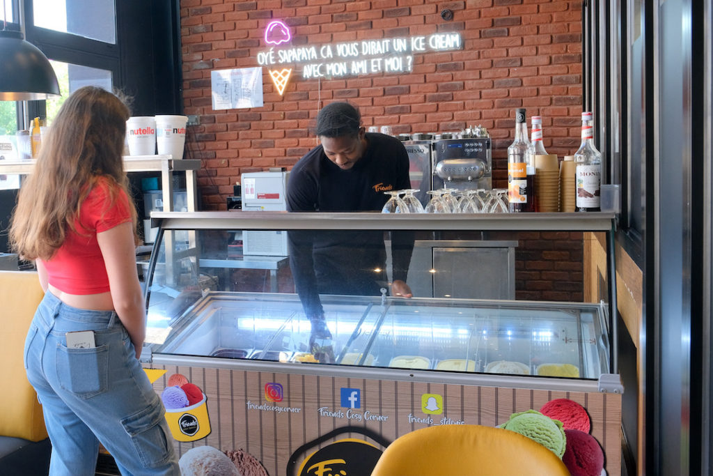 Pour ma chronique, j’ai interviewé Agva, le gérant du restaurant Friends Cosy Corner. Il nous a raconté l’histoire de ce lieu qui était auparavant une concession Ford, puis un cybercafé avant de devenir le MacDal puis le Friends Cosy Corner. Sa famille a repris le restaurant en 2019. Ils ont gardé le même nom mais ils ont changé le concept et refait toute la décoration. “La restauration dans ma famille, c’est de père en fils !”. En 1992, son père a ouvert l’un des premiers kebabs de Saint-Denis, en face de la mairie, l’Iris. Agva, dans son nouveau restaurant, a voulu faire évoluer un peu le concept en ajoutant au kebab d’autres spécialités. Tout est fait à la minute et à la demande. Leur spécialité est le cheese nan. Agva nous a expliqué qu’à midi, il fallait être très rapide car les clients sont pressés et n’ont souvent qu’une heure pour déjeuner. Il assure ne pas avoir de clients “difficiles”, mais beaucoup d’étudiants et de personnes qui travaillent dans les bureaux alentour. Très peu font des critiques et quand ils en font elles sont généralement positives !